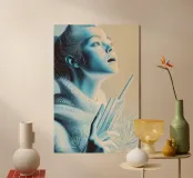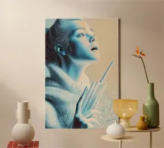 Un ipnotico ritratto futuristico che cattura un momento di pura meraviglia. L'esclusivo stile a macchie e texture conferisce all'opera d'arte una qualità surreale, quasi scultorea. Immerso in una luce fredda e celestiale, questo pezzo evoca un senso di stupore e di esplorazione dell'ignoto. Un pezzo perfetto per gli amanti della fantascienza e dell'arte moderna.