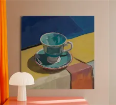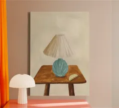 Isabelle is a Belgian artist based in Portugal. She draws inspiration from the quiet rhythm of daily life. The way light falls gently across a room, the warmth of familiar interiors, or the elegance of simple objects arranged in space. A walk through the fisherman’s town where she lives often sparks new ideas: people sunbathing, friends playing cards, and the details of everyday interiors all become sources of reflection and creation. In her studio, she reflects on these fleeting details and transforms them into compositions that honor stillness, memory, and presence. When she is not painting, she enjoys running, surfing, visiting flea markets, and exploring new places. These experiences, along with the small moments that linger in memory, weave their way into her work, creating pieces that invite others to slow down and connect with the gentle beauty of life.