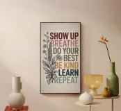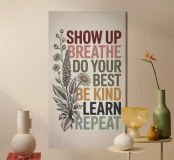 Un design stimolante che unisce motivazione e stile. I colori tenui - rosso scuro, rosato, oliva, senape e menta - su uno sfondo grigio-beige creano un'atmosfera armoniosa. Perfetto per dare a se stessi o a una persona cara un messaggio di valore.