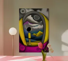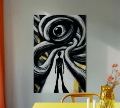 Quest'opera d'arte presenta una sorprendente giustapposizione di colori e monocromia, creando un racconto di contrasto e contemplazione. Questo disegno artistico conferisce una profondità intrigante a qualsiasi ambiente, invitando gli spettatori a riflettere sulla storia che lo sottende. Perfetto per creare un punto focale negli spazi contemporanei, offre una visione unica che stimola la conversazione e l'immaginazione. Aggiungete un tocco di introspezione al vostro arredamento con questo pezzo coinvolgente e stimolante.