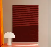 Linee spesse e sottili di colore rosso mattone, dai bordi morbidi e dalla texture sfumata, su uno sfondo marrone scuro e rossastro. Sviluppato dal gioco di luci e ombre delle persiane.