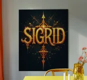 Sigrid "bella vittoria" con un disegno simile a uno stemma contribuisce con l'opera d'arte a un momento di vittoria.