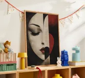 Accattivante fusione di minimalismo ed emozione, Silent Muse ritrae un sereno volto femminile che si fonde con una geometria astratta. I toni morbidi della pelle contrastano con blocchi audaci di rosso, nero e crema, formando una composizione a forma di cuore che simboleggia la calma interiore e la forza tranquilla. Gli occhi chiusi e i tratti delicati evocano eleganza, mistero e bellezza senza tempo: un'icona moderna dell'introspezione.