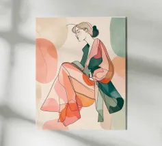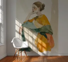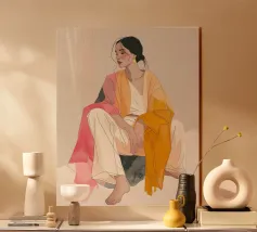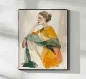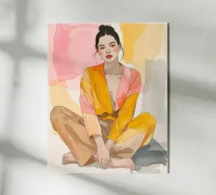 "Silenzio interiore" - pensieri in colori tenui Questo disegno cattura un tranquillo momento di pausa. La posa calma, gli occhi chiusi e gli acquerelli fluenti parlano di auto-riflessione, forza interiore e tranquilla eleganza. Il giallo caldo e i toni della terra si combinano con il verde freddo per creare un equilibrio armonioso, come un dolce respiro per l'anima e un accento poetico per ogni stanza.