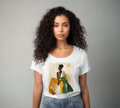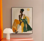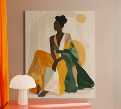 "Silenzio interiore" - pensieri in colori tenui Questo disegno cattura un tranquillo momento di pausa. La posa calma, gli occhi chiusi e gli acquerelli fluenti parlano di auto-riflessione, forza interiore e tranquilla eleganza. Il giallo caldo e i toni della terra si combinano con il verde freddo per creare un equilibrio armonioso, come un dolce respiro per l'anima e un accento poetico per ogni stanza.