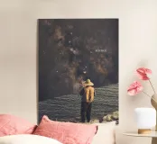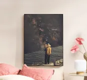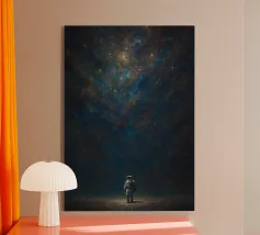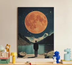 Una scena surreale di un pescatore solitario che si lancia nella galassia. Questo collage tranquillo e contemplativo cattura la pace della solitudine e la vastità del pensiero. Perfetto per sognatori e minimalisti.