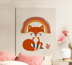 Simpatica volpe addormentata sull'arcobaleno con elementi celestiali plexiglass