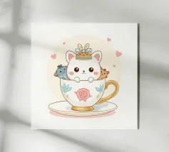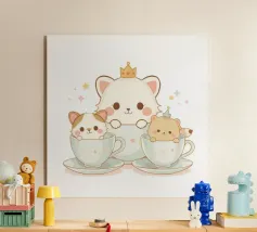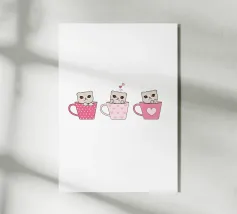 Simpatici gattini con tazze di caffè. Design di Buon Natale