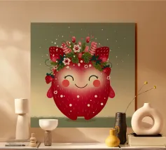 Simpatico mostro come un lampone in un allegro look kawaii, con fiori, foglie e dolci dettagli - perfetto per i bambini e per tutti gli appassionati di illustrazioni giocose.Mostro dal design amorevole e allegro.Dettagli giocosi come fiori e foglie Perfetto per i bambini e gli appassionati di fumetti Simpatica figura dall'aspetto di un frutto rosso Ideale per gli appassionati di motivi ludici