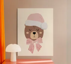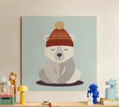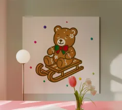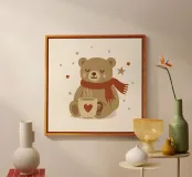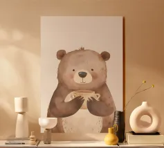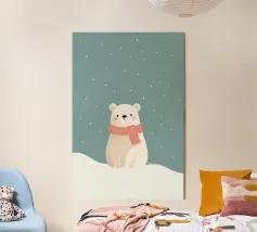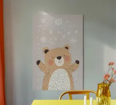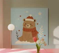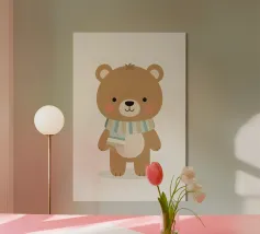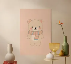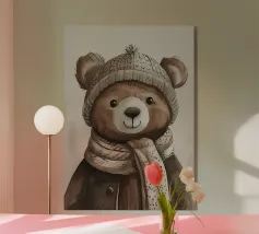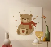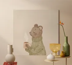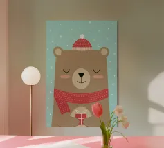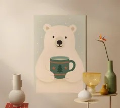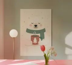 Simpatico orso in inverno con sciarpa e tazza calda plexiglass