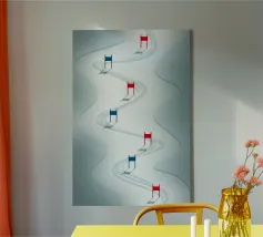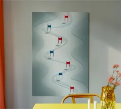 Catturate l'eleganza e la precisione dello sci alpino con questo poster minimalista sullo slalom. Caratterizzato da sinuose piste da sci che si snodano attraverso vivaci porte rosse e blu, questo disegno mostra il flusso dinamico e l'abilità di questo sport. I toni nitidi del bianco e del blu ghiaccio evocano la bellezza incontaminata delle piste, rendendolo un pezzo perfetto per gli appassionati di sport invernali. Ideale per la casa, l'ufficio o la baita, questo poster incarna l'emozione e la concentrazione delle gare di slalom. Celebrate l'arte dello sci con questo suggestivo ed elegante omaggio alle montagne!