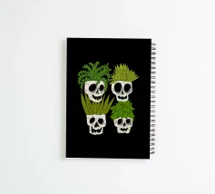 Design giocoso con eccentrici vasi a forma di teschio riempiti di rigogliose piante d'appartamento. Perfetto per gli amanti delle piante con senso dell'umorismo, questo motivo unico aggiunge un tocco di divertimento e fascino a qualsiasi spazio.