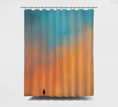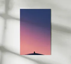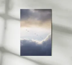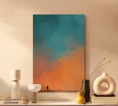 Una figura solitaria si erge sotto un cielo sconfinato, dove il calore dell'albicocca si fonde perfettamente con il blu polvere. Le morbide trame pittoriche e i delicati uccelli in volo conferiscono all'opera un'atmosfera onirica e poetica. Questa composizione, al tempo stesso solida ed espansiva, evoca un tranquillo senso di stupore, uno sguardo contemplativo nello spazio sempre mutevole tra solitudine e libertà. Uno studio sul contrasto, l'immobilità e l'elevazione.