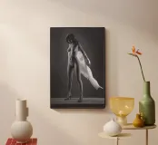 An art nude shot of a young woman in a white robe