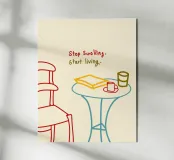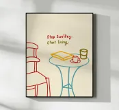 Prendetevi una pausa dallo schermo e immergetevi nelle piccole gioie, come una tazza di caffè caldo, un buon libro e momenti di tranquillità. Questa stampa vi ricorda di essere presenti e di respirare con calma. È una spinta gentile a iniziare a vivere, non solo a scorrere.