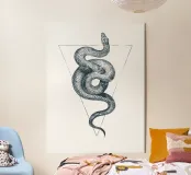 Immergetevi nel mondo misterioso e potente dello "Snake Triangle". Questo disegno fonde il simbolo del serpente, che rappresenta la trasformazione e la rinascita, con gli spigoli geometrici di un triangolo. Audace e tagliente, è perfetto per chi abbraccia sia la saggezza del serpente che la forza della geometria. Un pezzo di grande effetto per chi apprezza l'equilibrio tra il misticismo della natura e il design moderno.