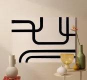 Quest'opera mostra due forme dinamiche e curve in nero profondo su uno sfondo bianco. I contrasti conferiscono all'opera una forte espressività e permettono allo spettatore di sperimentare l'equilibrio tra vuoto e movimento. Perfetto per gli interni minimalisti che desiderano creare accenti attraverso l'arte.
