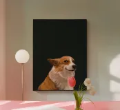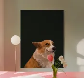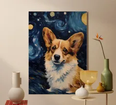 Un piccolo e sciocco cane Pembroke Welsh Corgi che fa gli occhi dolci in un ritratto pittorico