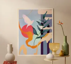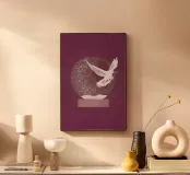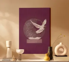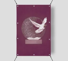 Un poster per le buie giornate invernali e per il Natale, con colombe di pace nel cielo stellato notturno, che trasmette il messaggio natalizio per eccellenza: liberarsi e portare la pace.