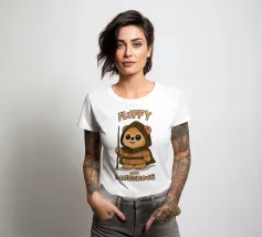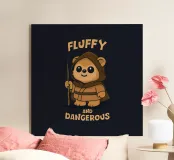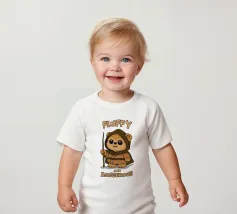 Un orso guerriero di peluche ispirato agli Ewok di Star Wars, che indossa un cappuccio e impugna un bastone. Carino ma feroce, questo disegno mescola nostalgia fantascientifica e umorismo. Perfetto per i fan di Star Wars, i collezionisti nerd e gli amanti dei piccoli ribelli.