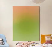 Una composizione astratta minimalista costruita con dolci transizioni di toni di pesca, verde chiaro e giallo tenue. Il morbido gradiente crea un senso di calore, equilibrio e tranquillo movimento, evocando la sensazione della luce che si deposita lentamente nello spazio. Sottile e rilassante, quest'opera d'arte invita alla quiete e si adatta perfettamente come accento sereno in interni moderni, minimalisti o contemporanei.