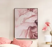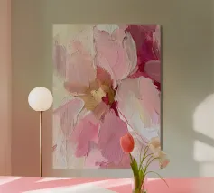 This abstract floral artwork captures the delicate movement of soft petals in warm blush and muted rose tones. Flowing brushstrokes and gentle textures create a sense of calm, elegance, and organic beauty. The composition feels light and airy, evoking softness and quiet harmony without defining a specific flower. Perfect wall art for modern, Scandinavian, or contemporary interiors, adding warmth, femininity, and a refined artistic touch to bedrooms, living spaces, or creative environments.