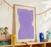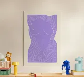 Un'opera d'arte minimalista nello stile di una linoleografia: il corpo femminile è qui indicato solo da linee fluide e forme ridotte. In un tenue lilla su sfondo color crema, il motivo irradia calma, sensualità e forza allo stesso tempo. Ideale per interni moderni, pareti artistiche femministe o come delicato accento di profondità.