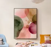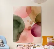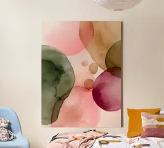 Una rilassante composizione ad acquerello con forme organiche fluide nei toni del fard, del verde oliva e del caldo caramello. Quest'opera d'arte irradia un'armonia naturale e una calma raffinatezza: il centro perfetto per interni moderni e sereni.