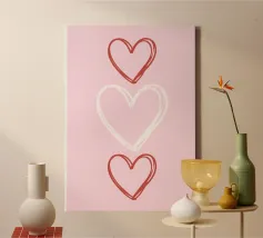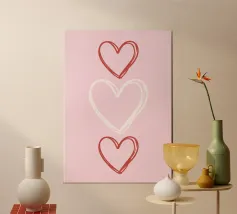 Semplici, tranquille e ricche di sentimento: le delicate forme a cuore aggiungono un tocco di amore alla stanza. Perfettamente abbinabili ad altre stampe per una galleria armoniosa.