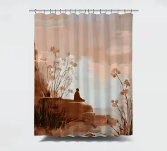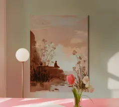 Neutral landscape wall art with soft clouds and earthy tones. Modern abstract painting print for calming minimalist interiors.