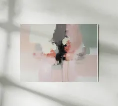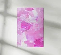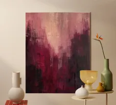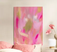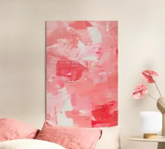 Albero di Natale astratto rosa da parete. Moderna stampa natalizia con morbida texture pittorica e toni invernali femminili.