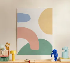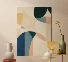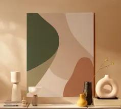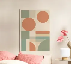 Portate equilibrio e calore al vostro spazio con questa serena composizione astratta di forme morbide sovrapposte nei toni del rosa polveroso, del pesca e del salvia. Un pezzo minimalista ma ricco di emozioni, ideale per gli interni moderni che celebrano la calma, il flusso e l'armonia dei colori.
