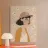 Ritratto dai colori tenui di una ragazza pensierosa con occhiali e berretto, circondata da fiori simili a margherite.