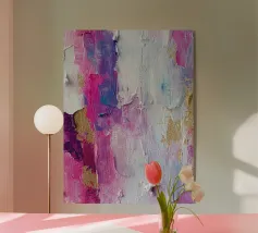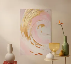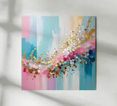 Flowing vertical brushstrokes and delicate accents create a sense of movement and light. This abstract artwork feels expressive yet calm, perfect for modern living spaces.