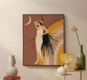 "Boho Dreams" mescola marroni terrosi e gialli dorati per creare un legame sereno tra una donna dallo spirito libero e la natura. Questa stampa d'arte incarna la tranquillità e il fascino senza tempo dell'eleganza bohémien.