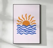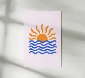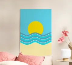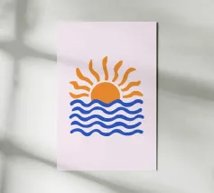 Diese moderne grafische Illustration verbindet Sonne und Meer in einem minimalistischen, stilvollen Design. Warme Gelbtöne treffen auf beruhigendes Blau und erzeugen ein harmonisches Zusammenspiel von Licht und Wasser. Perfekt für alle, die den entspannten Vibe des Sommers und die Sehnsucht nach dem Meer in ihre vier Wände bringen möchten – zeitlos, klar und voller Fernweh.