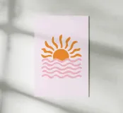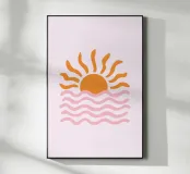 Questa elegante opera d'arte grafica combina il calore del sole con la dolce distesa del mare in un'armoniosa combinazione di colori arancione e rosa. Le morbide sfumature di colore e il design minimalista irradiano leggerezza, umore estivo e tranquillità. Perfetto per gli spazi moderni che emanano una sensazione di vacanza, luce e gioia di vivere.