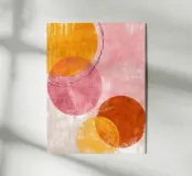 Le forme circolari in ocra dorata e rosa evocano un morbido ritmo solare. Minimale ma emotivo, questo pezzo irradia una forza tranquilla.