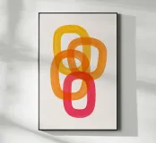 Questo poster d'arte moderna mostra forme intrecciate e trasparenti nei toni accesi del rosso, dell'arancione e del giallo. I colori caldi creano leggerezza e movimento e ricordano la luce del sole, il calore e l'energia. Ideale per interni minimalisti, spazi abitativi moderni o studi creativi: un richiamo armonioso per qualsiasi parete.
