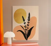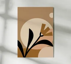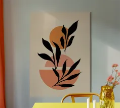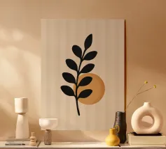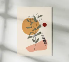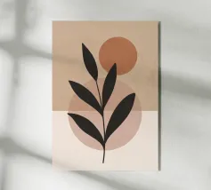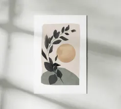 Questa splendida e moderna stampa da parete presenta un disegno botanico minimalista con un sorprendente contrasto di sagome nere su uno sfondo caldo e neutro. Il centro è costituito da un grande sole dorato, che aggiunge un tocco di eleganza e calore, mentre una morbida forma astratta color pesca completa la composizione. Questo pezzo è perfetto per creare un'atmosfera serena e sofisticata in qualsiasi spazio, dal soggiorno alla camera da letto o all'ufficio. È un'ottima scelta per chi apprezza l'estetica boho, scandinava o moderna di metà secolo. Stampata su carta opaca di alta qualità, quest'opera d'arte è disponibile in