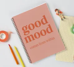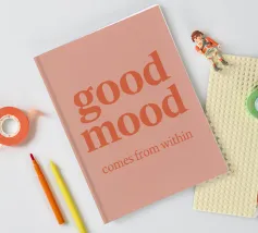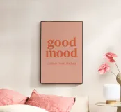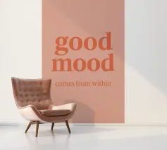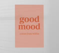 Questo poster positivo in rosa tenue e arancione vivace vi ricorda che il buon umore inizia dentro di voi. L'armoniosa combinazione di colori incontra un messaggio chiaro, perfetto per la casa, l'ufficio o lo studio. Ideale per chiunque si concentri consapevolmente sull'umore, sulla cura di sé e sull'energia positiva. Un design che fa sentire bene.
