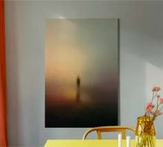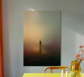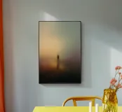 Immersa in un gradiente di oro miele e malva tenue, una figura solitaria si trova come sospesa tra presenza e scomparsa. I bordi ammorbiditi e l'atmosfera onirica creano uno spazio liminare in cui il tempo si dissolve e l'io si diffonde. Quest'opera esplora l'isolamento come peso e liberazione, una riflessione astratta sulla memoria, l'identità e l'eco dell'immobilità. Pittorica e contemplativa, invita a un'immersione silenziosa.