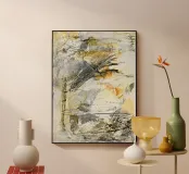 "Somewhere in my memory II" è un viaggio emotivo attraverso frammenti di momenti passati. Forme nebbiose nei toni caldi dell'arancio, del grigio tenue e del giallo pallido permeano l'immagine come ricordi sbiaditi. La composizione è come un diario visivo - intuitivo, fugace, con delicate sovrapposizioni che ricordano fotografie ingiallite o sequenze di sogni.
