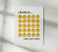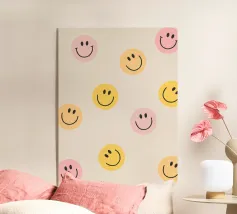 Rallegrate la vostra giornata con questo allegro poster! Con una serie di smiley vivaci e il messaggio edificante "Ti senti giù? Afferra un sorriso", questa opera d'arte ricorda che un semplice sorriso può fare una grande differenza. Lasciate che queste facce giocose portino gioia e positività nel vostro spazio!