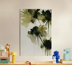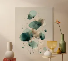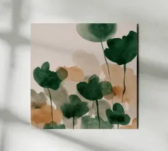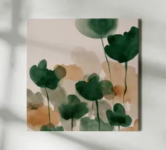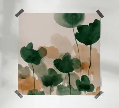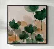 Un'astrazione stratificata di fogliame lussureggiante e sovrapposto in verdi profondi, ocra caldi e neutri morbidi. Il gioco di trasparenze e forme evoca le trame sfumate di una foresta sotterranea, offrendo una presenza tranquilla e organica a qualsiasi interno.