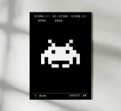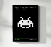 Space invaders, giochi arcade, gioco, retrò, vintage, Bauhaus, arte astratta, arte grafica, pop art, nero, bianco, camera dei bambini, camera da letto, soggiorno, ufficio, cucina
