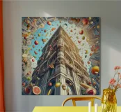 Sphere 047 - Surreal Building With Floating Fruits plexiglass