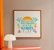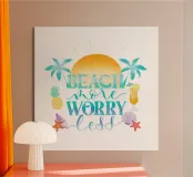 Spiaggiare di più. Worry Less. Lettering fresco con sensazione di spiaggia plexiglass