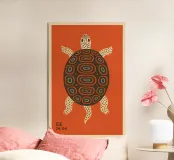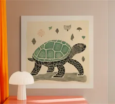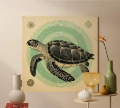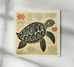 Scivolate nella calma con questa tartaruga a fantasia vista dall'alto, con gli anelli geometrici del guscio che orbitano come antichi mandala su un mare di terracotta brunita. Il disegno, che richiama stampe giapponesi d'epoca e motivi folkloristici, unisce il calore della terra a un'audace precisione grafica. I pigmenti d'archivio conservano ogni sfumatura rasserenante, per dare un'impronta di fondo a uffici, studi di yoga o interni costieri. Simboleggiando la longevità, la saggezza e i progressi costanti, il disegno ci ricorda ogni giorno di rallentare, respirare e avere fiducia nel viaggio. Ideale per regali consapevoli o per angoli di rifugio personale alla ricerca di una tranquilla concentrazione.