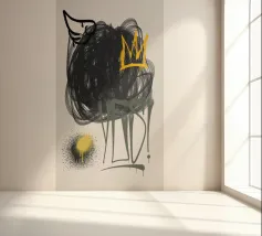 "Spray Nation" è una dichiarazione grafica. Attraverso un'esplosione di strati di vernice spray, sagome ritagliate e scritte potenti, quest'opera cattura l'essenza stessa della street art: libera, diretta e senza filtri. Le forme geometriche incorniciano il caos apparente, sottolineando l'armonia nascosta sotto l'anarchia visiva. È un omaggio a tutte le voci che si esprimono sui muri senza chiedere il permesso.